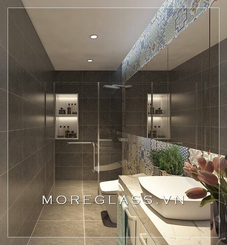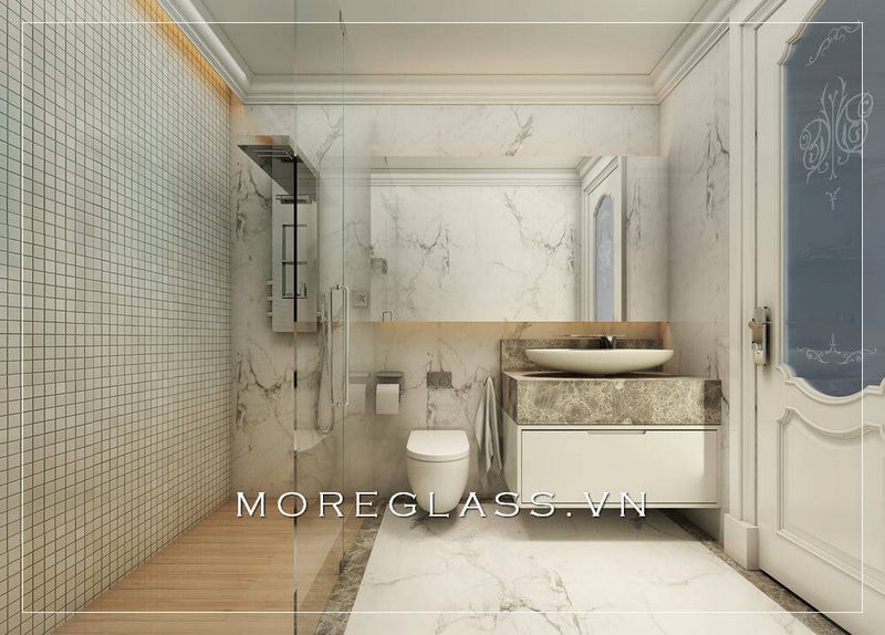 Sử dụng nội thất chủ yếu là kính, không gian nhà tắm sẽ trở nên sang trọng hơn và cảm giác thoáng đãng sẽ được tạo ra, giúp không gian phòng tắm trở nên rộng rãi hơn.